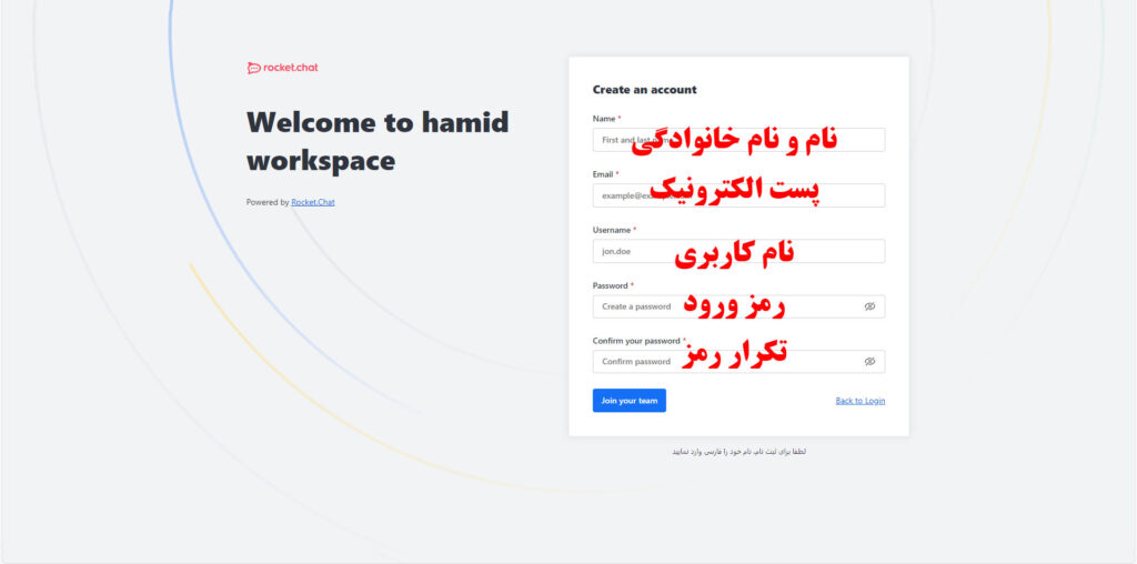 پس از پر کردن فرم دکمه join your team را بزنید و وارد شوید.